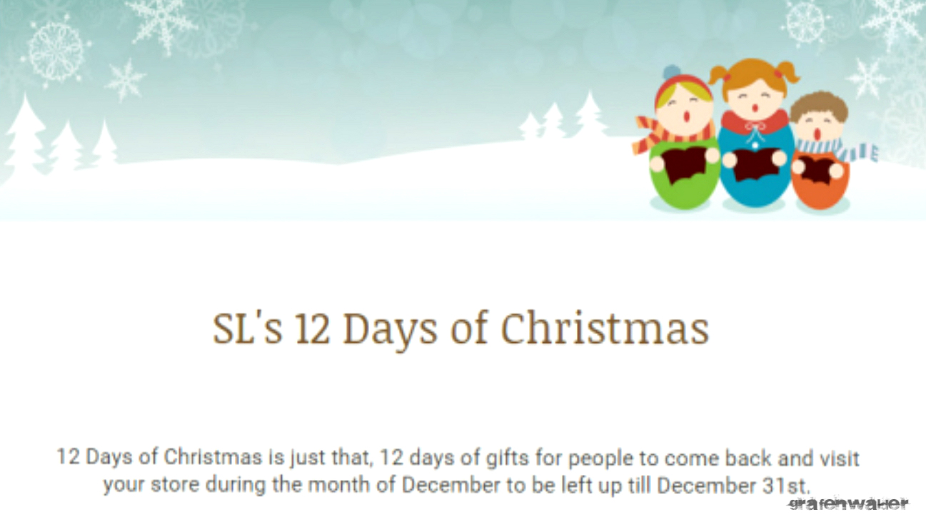 Here is a list of the stores participaiting of SL´s 12 Days of Christmas and URL.